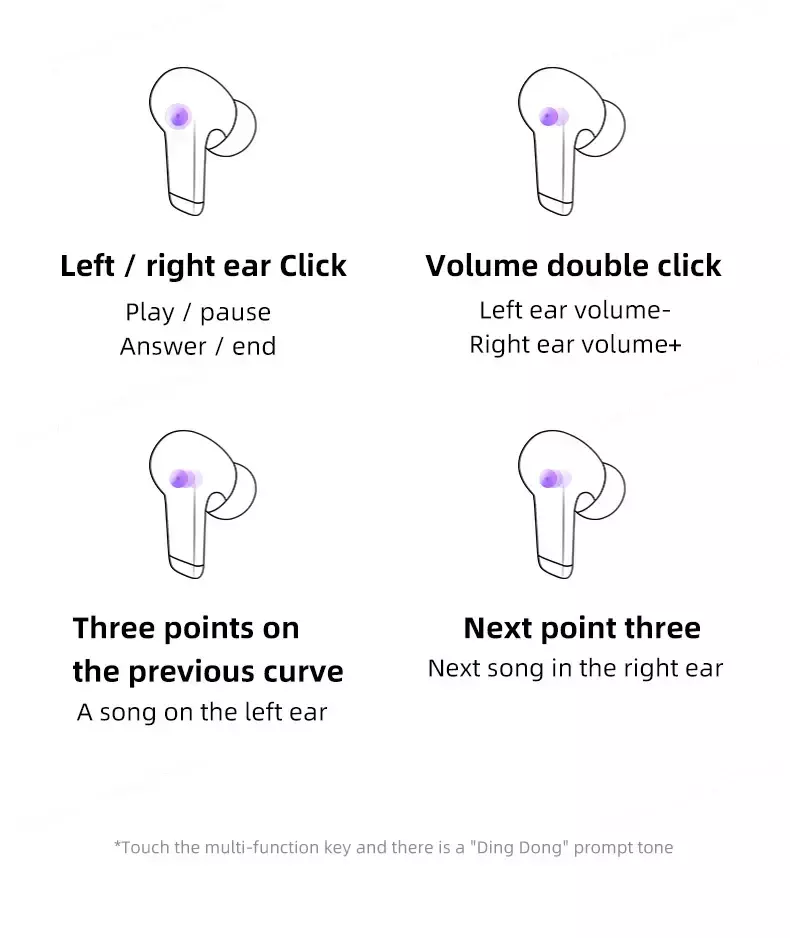The headset is touch operated, you can switch the upper and lower music, increase and decrease the volume, answer the call and activate the voice assistant on the headset